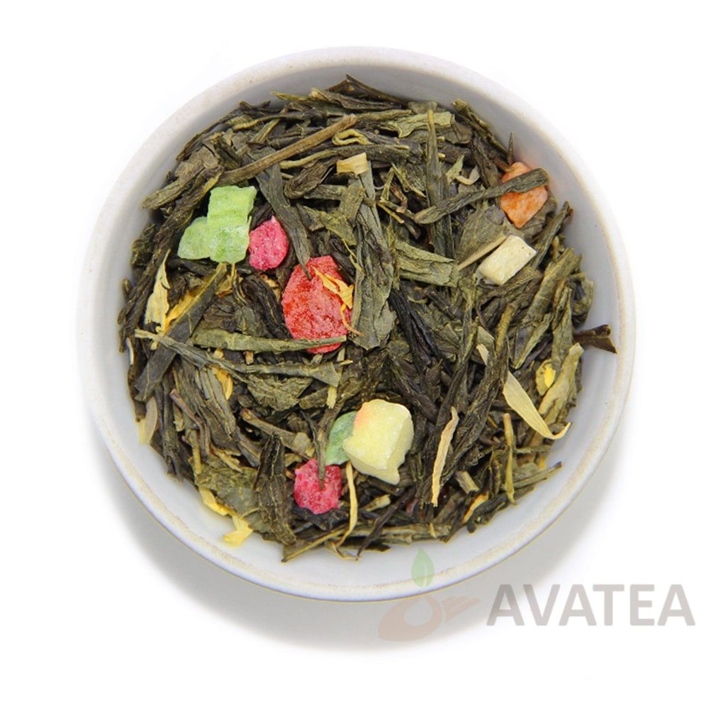 Зеленый чай с персиком "Персиковый рай" - это смесь сушеных летних фруктов, травяных и цветочных добавок, а также великолепного японского чая сенча. Настой получится светло-зеленым с небольшой золотинкой, очень приятный и по-летнему свежий.