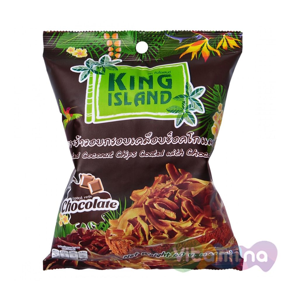 Кокосовые чипсы King Island, тонкие, хрустящие и обладающие оригинальным и насыщенным вкусом, произведены из отборных кокосов, выращенных в солнечном Таиланде.