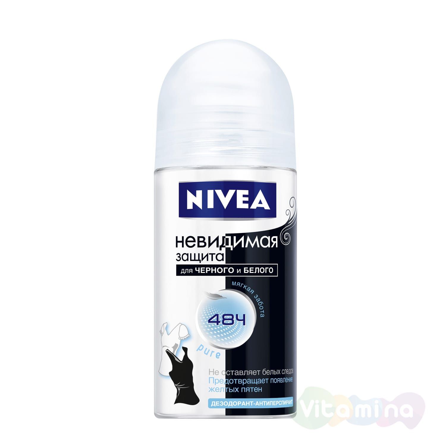 Дезодорант-антиперспирант "Невидимая защита для черного и белого" от NIVEA не оставляет белых следов на черной одежде, предотвращает появление желтых пятен на белой. Надежно защищает Вас и Вашу одежду в течение 48 часов.