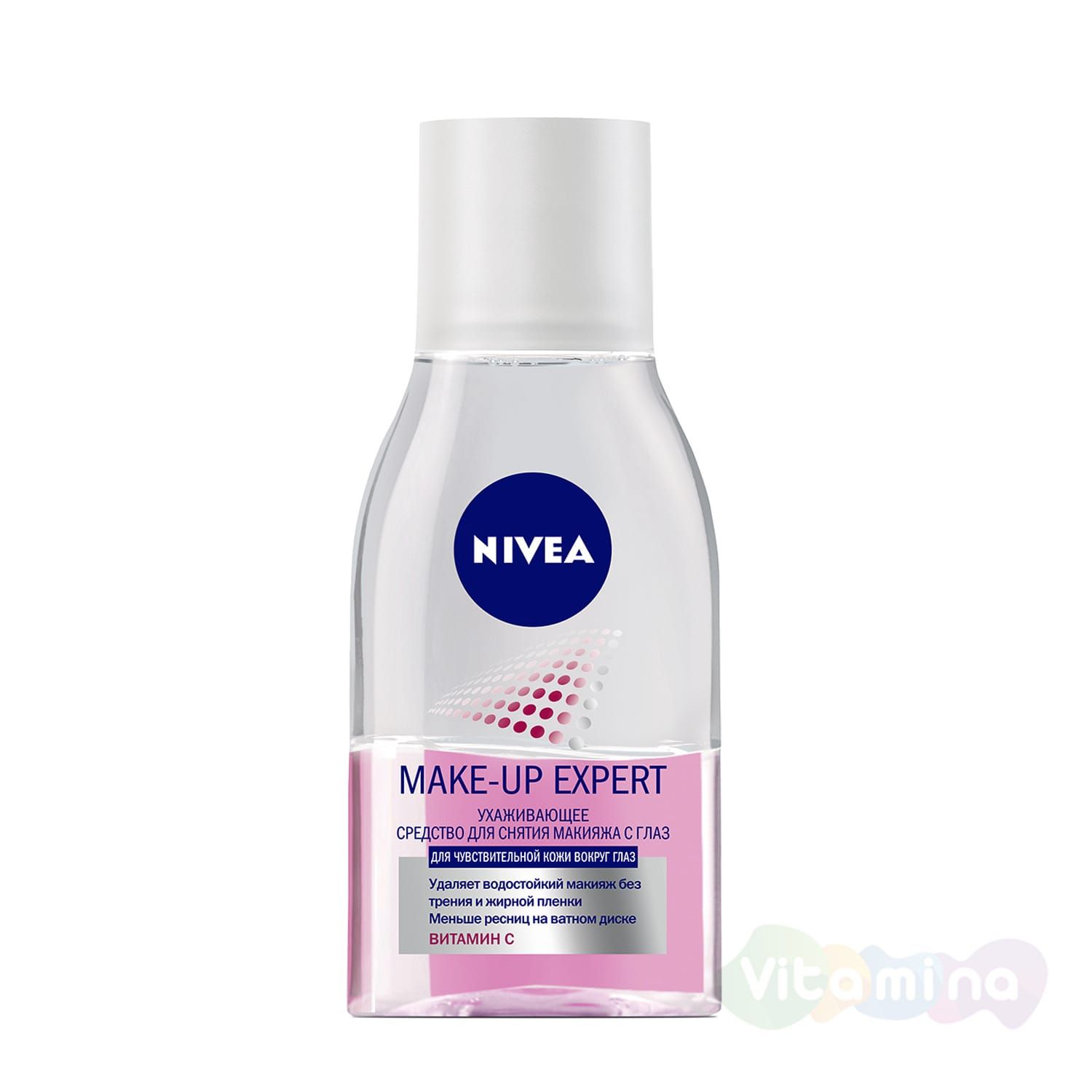 NIVEA представляет Ухаживающее средство для снятия макияжа с глаз MAKE-UP EXPERT. При очищении ватным диском важно совместить эффективное удаление макияжа с бережным уходом за кожей вокруг глаз и ресницами. Многие девушки отмечают, что после снятия макияжа на ватном диске могут оставаться реснички. Новинка линии MAKE-UP EXPERT – Ухаживающее средство для снятия макияжа с глаз – действует сразу в двух направлениях: прозрачная масляная фаза легко удаляет макияж, а ухаживающая цветная фаза с витамином С заботится о коже вокруг глаз и ресницах. Благодаря этому с каждым использованием на ватном диске остается меньше ресниц. Подходит даже для чувствительной кожи.