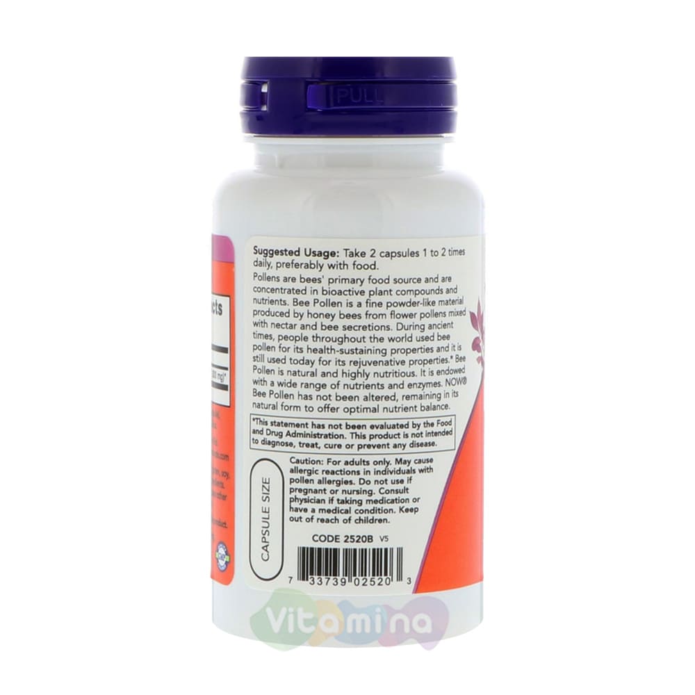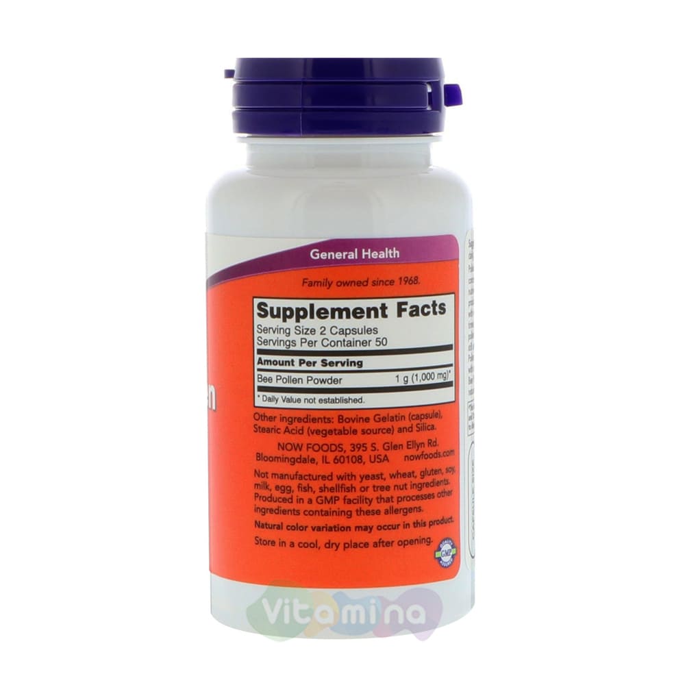 Пчелиная пыльца 500 мг, 100 капсул - Now Foods (США)