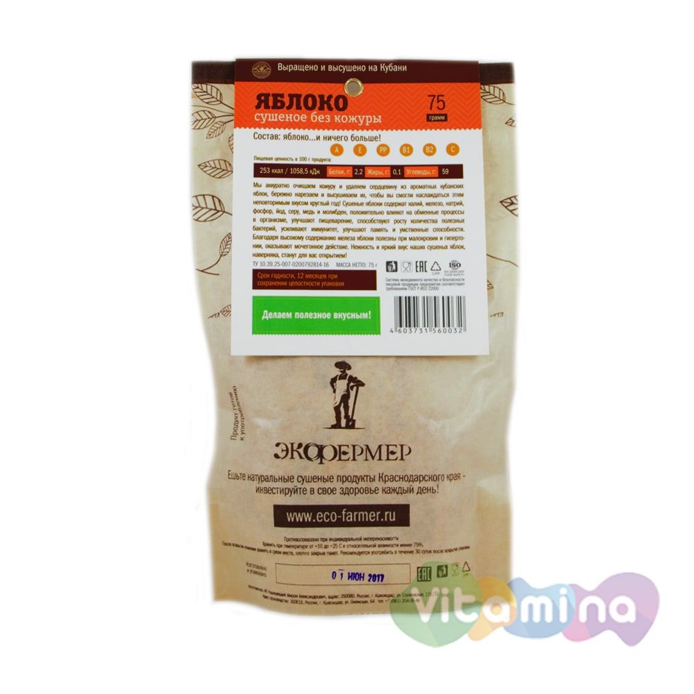 Отзывы о Яблоко сушеное без кожуры, 75 грамм