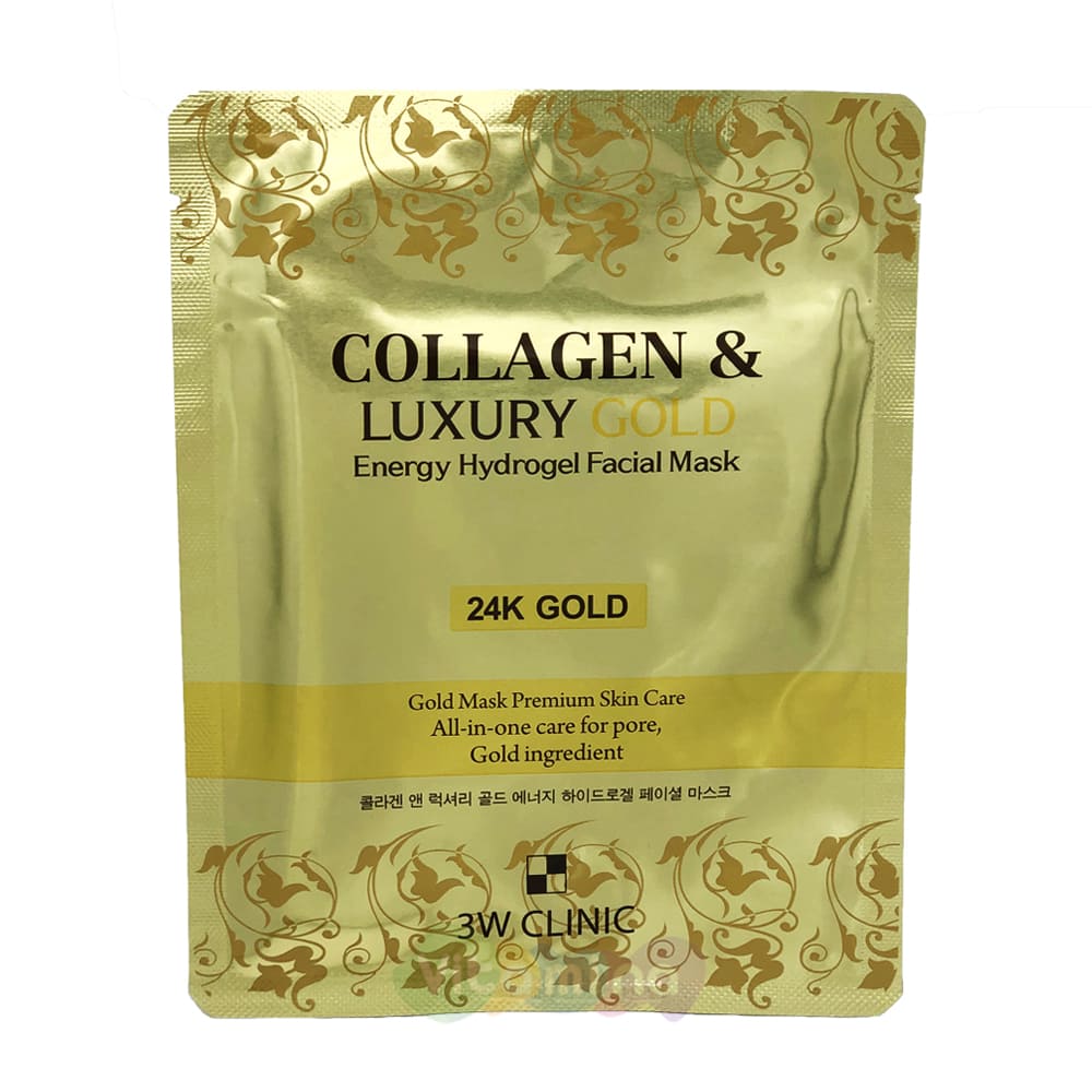 Collagen & Luxury Gold Energy Hydrogel Facial Mask - Гидрогелевая маска для лица с золотом - 3W CLINIC (Корея)