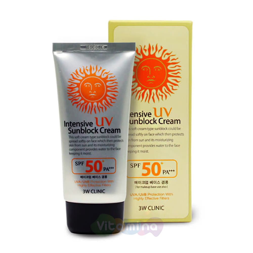Intensive UV Sun Block Cream SPF50+/PA+ - Интенсивный солнцезащитный крем для лица - 3W CLINIC (Корея)