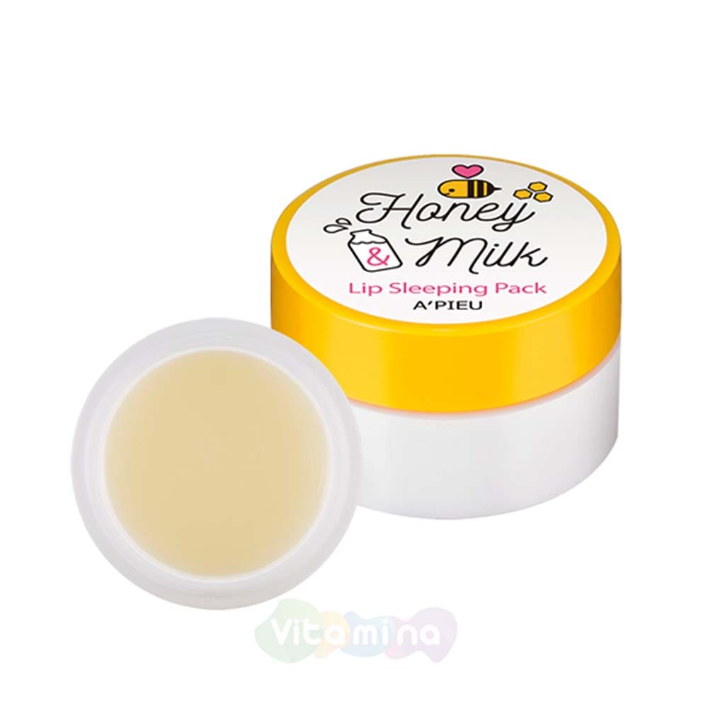 Ночная маска для губ с медом и молочными протеинами Honey & Milk Lip Sleeping Pack - A'Pieu (Корея)