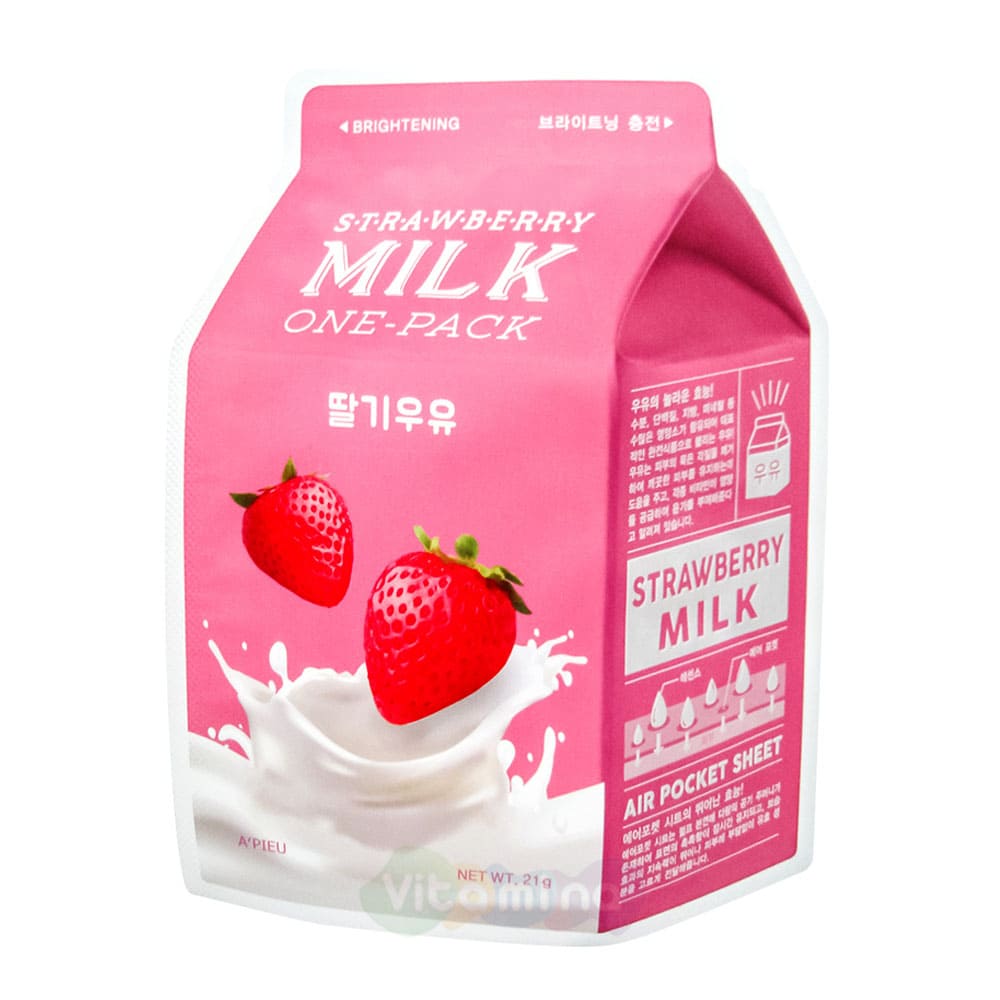 Осветляющая маска с экстрактом клубники Strawberry Milk One-Pack - A'Pieu (Корея)
