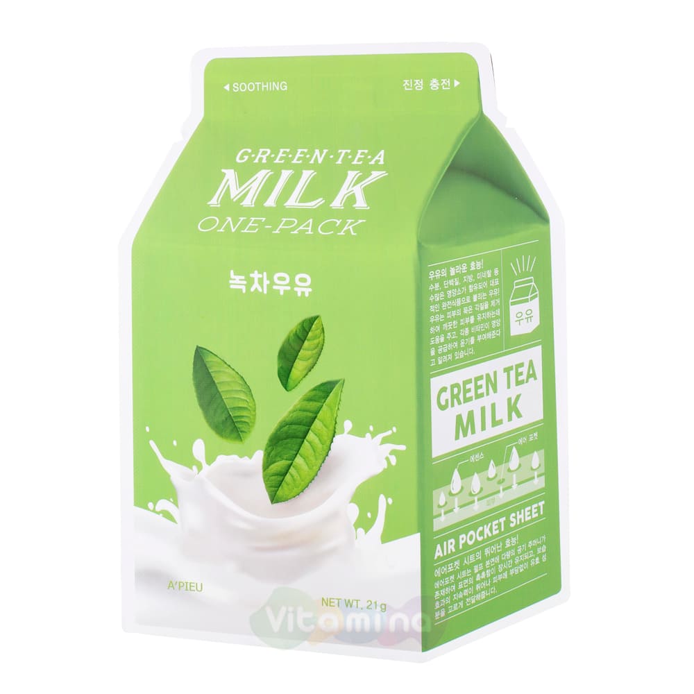 Успокаивающая маска с экстрактом зеленого чая и гамамелиса Green Tea Milk One-Pack - A'Pieu (Корея)