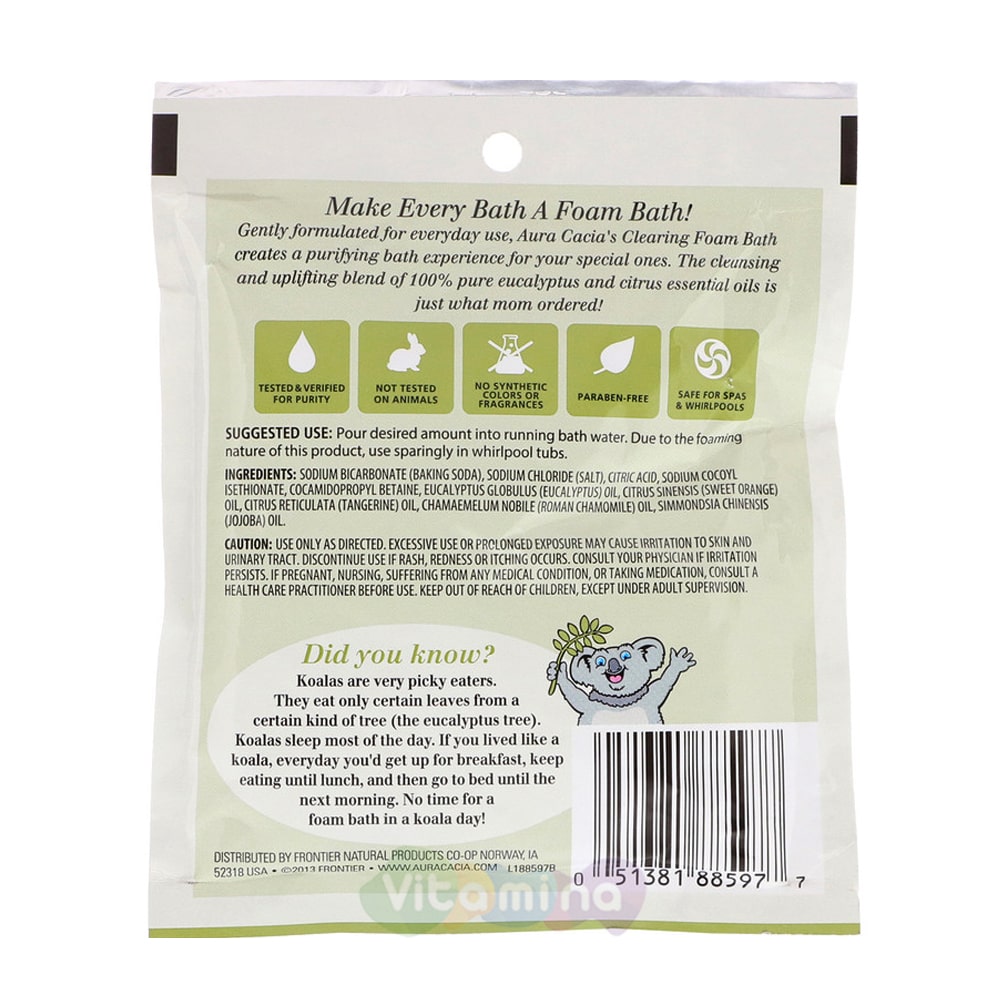 Пена для ванны Aura Cacia Clearing Eucalyptus с ароматом эвкалипта подходит для ежедневного использования.