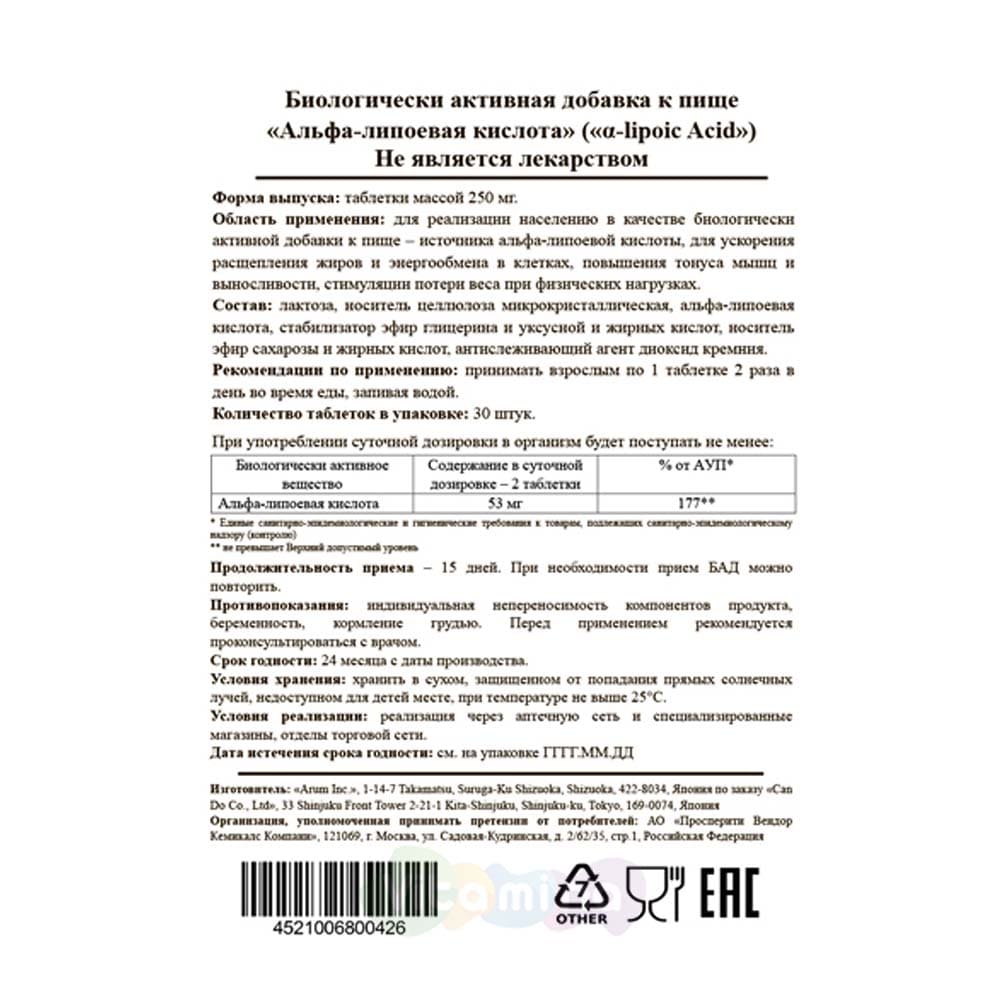 Характеристики CanDo Альфа-липоевая кислота, 30 таб.