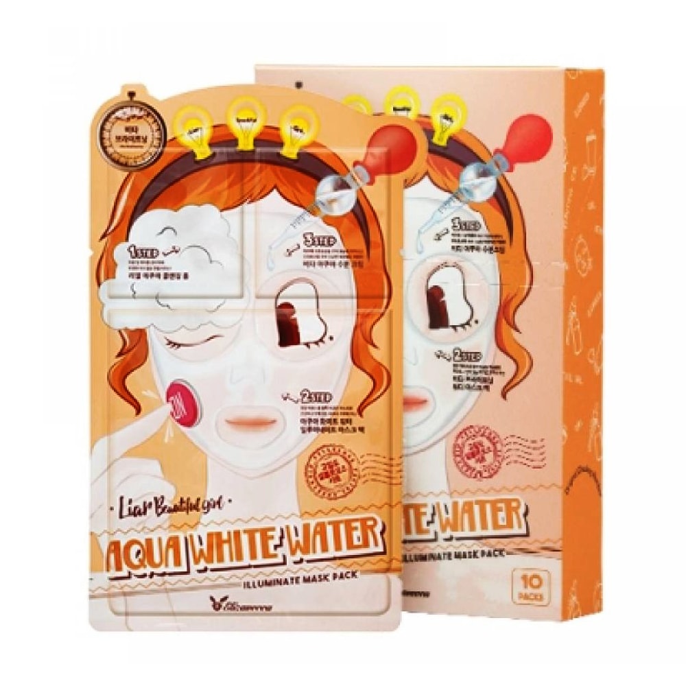 Трехшаговый осветляющий набор для лица Elizavecca Aqua White Water Illuminate Mask Pack состоит из трех средств, направленных на осветление пигментных пятен (постакне, возрастной пигментации и т.д.): мягкой очищающей пенки, увлажняющей маски, пропитанной осветляющей эссенцией и увлажняющего крема.
