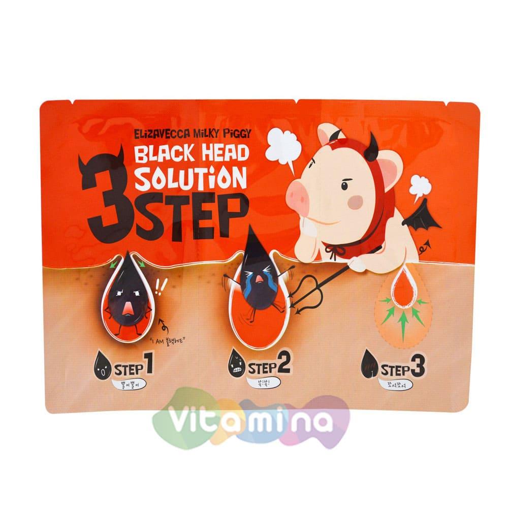 Набор для очищения кожи носа от черных точек Milky Piggy Black Head Solution 3 Step Nose Strip - Elizavecca (Корея)
