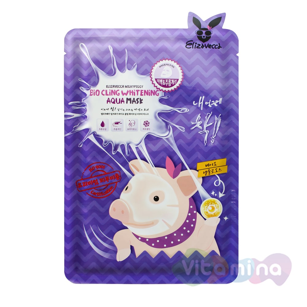 Milky Piggy Bio Cling Whitening Aqua Mask Омолаживающая маска из биоцеллюлозы, 25мл - Elizavecca (Корея)