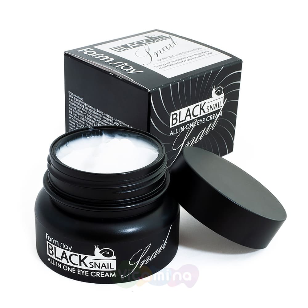 Многофункциональный крем с муцином черной улитки для кожи вокруг глаз Black Snail All In One Eye Cream - FarmStay (Корея)