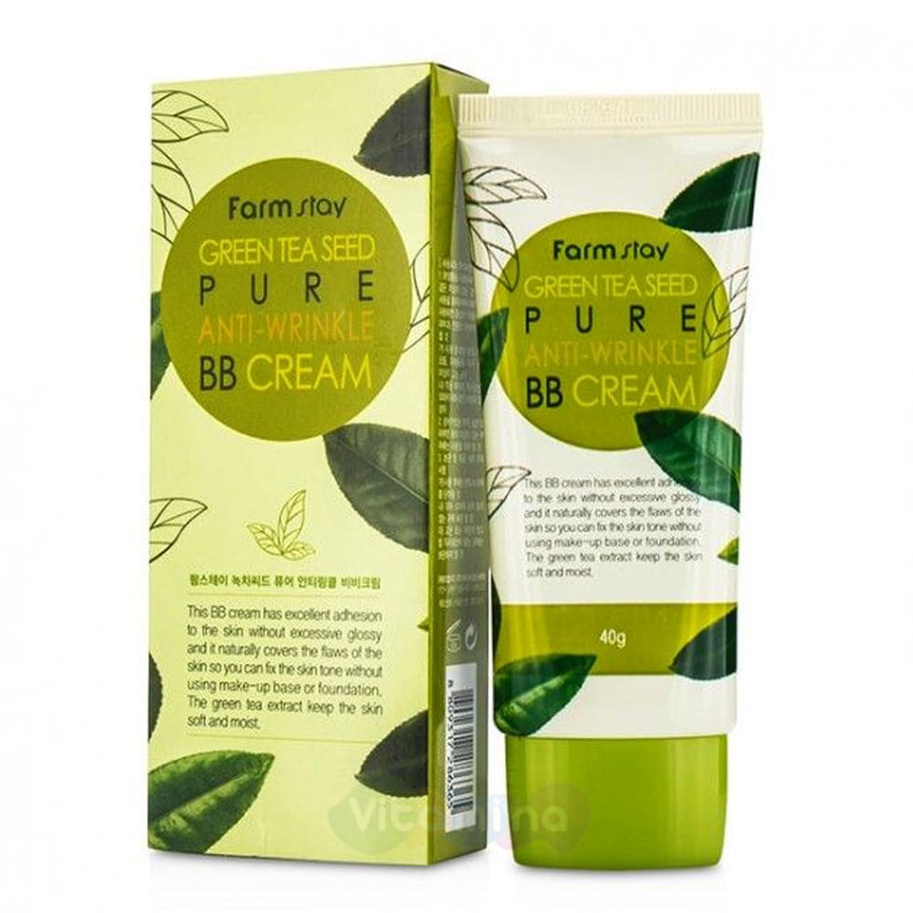 FarmStay Green Tea Seed Pure Anti-Wrinkle BB Cream — это матирующий ВВ крем для лица с антивозрастным эффектом. Он маскирует все несовершенства, борется с морщинами и дряблостью, делает кожу матовой и ухоженной.