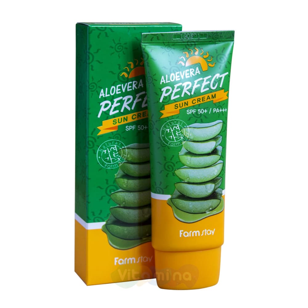 Солнцезащитный крем с экстрактом алоэ Aloe Vera Perfect Sun Cream SPF50+PA+++ - FarmStay (Корея)