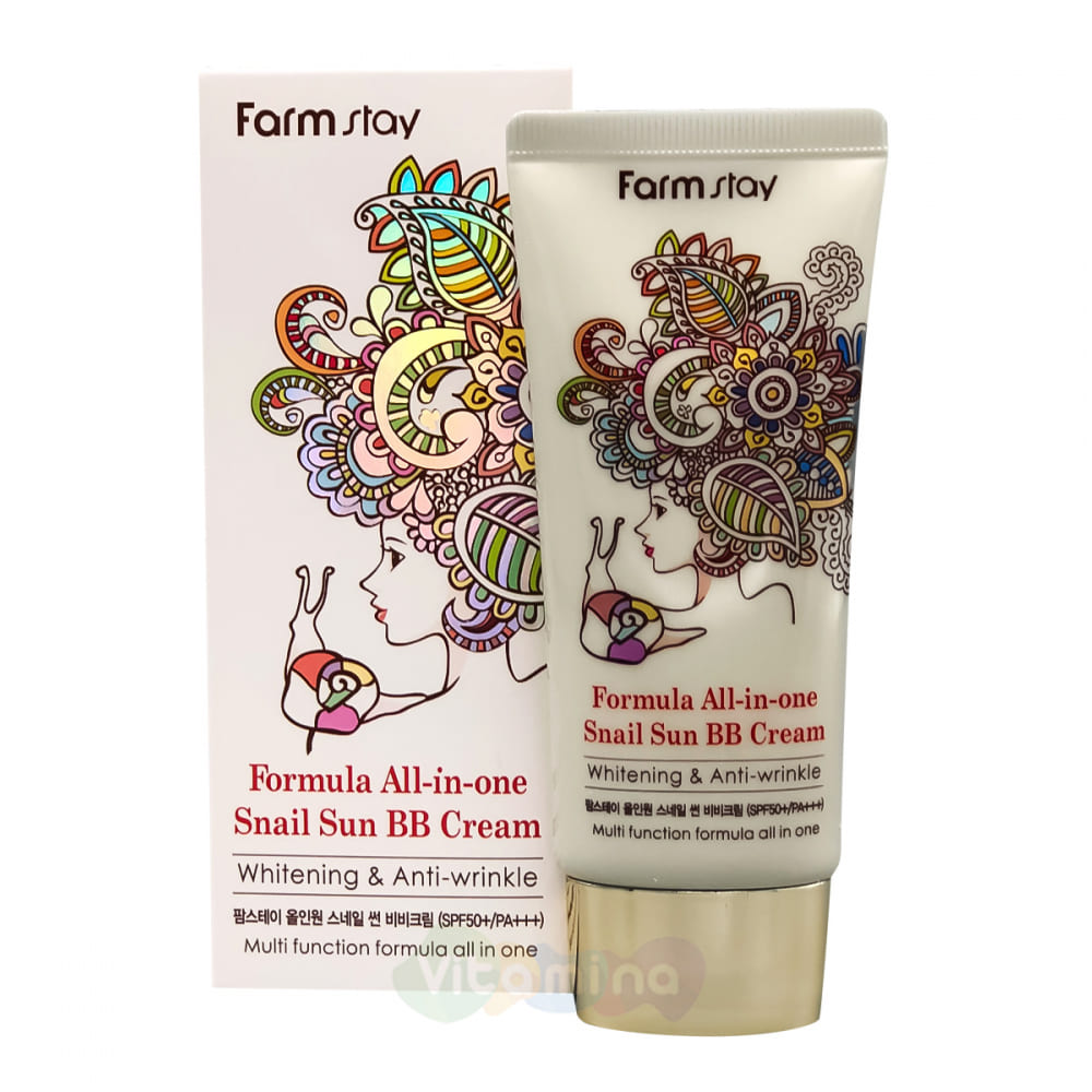 FarmStay Улиточный солнцезащитный ВВ-крем Formula All In One Snail Sun BB Cream SPF50+/PA+++, 50 мл