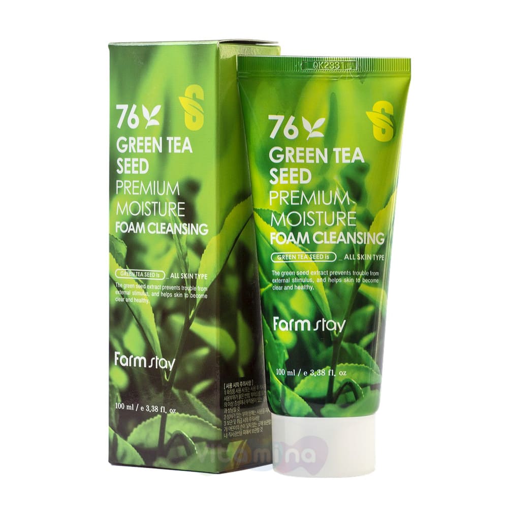 Ультраувлажняющая пенка для умывания с экстрактом семян зеленого чая 76 Green Tea Seed Premium Moisture Foam Cleansing - FarmStay (Корея)