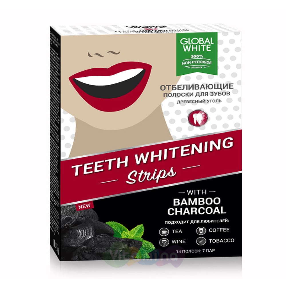 Global White Отбеливающие полоски для зубов древесный уголь без пероксида, 7 шт