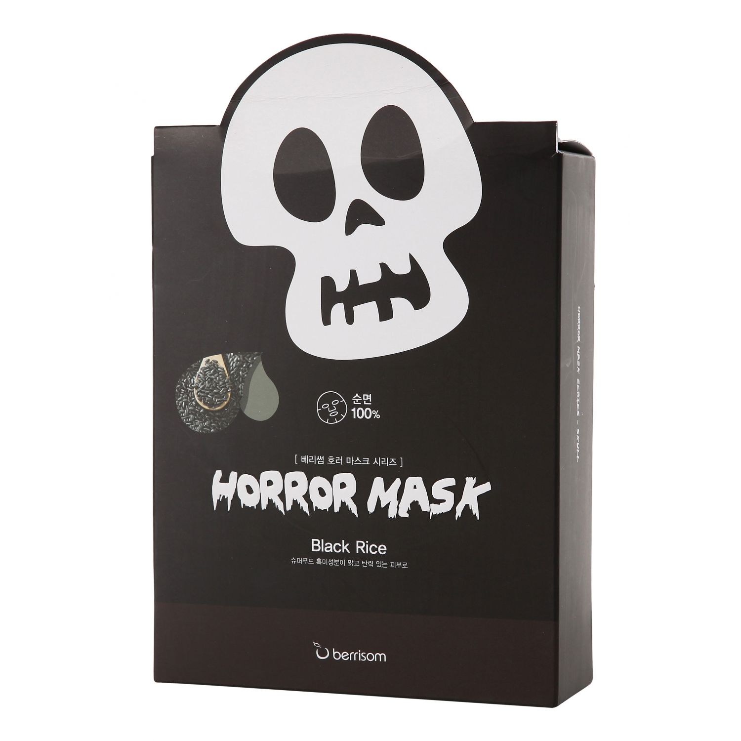 Berrisom Horror Mask Series Skull – маска-череп для сияния кожи, в составе маски экстракт черного риса и коллаген.
