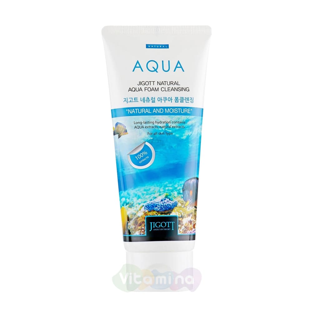 Jigott Пенка для умывания с аквамарином Natural Aqua Foam Cleansing, 180 мл