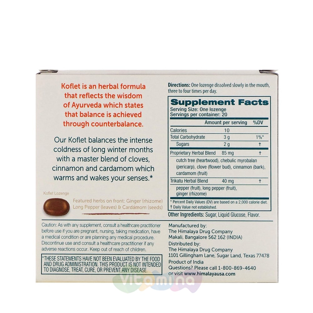 Koflet леденцы от кашля и боли в горле, 20 шт - Himalaya (Индия)