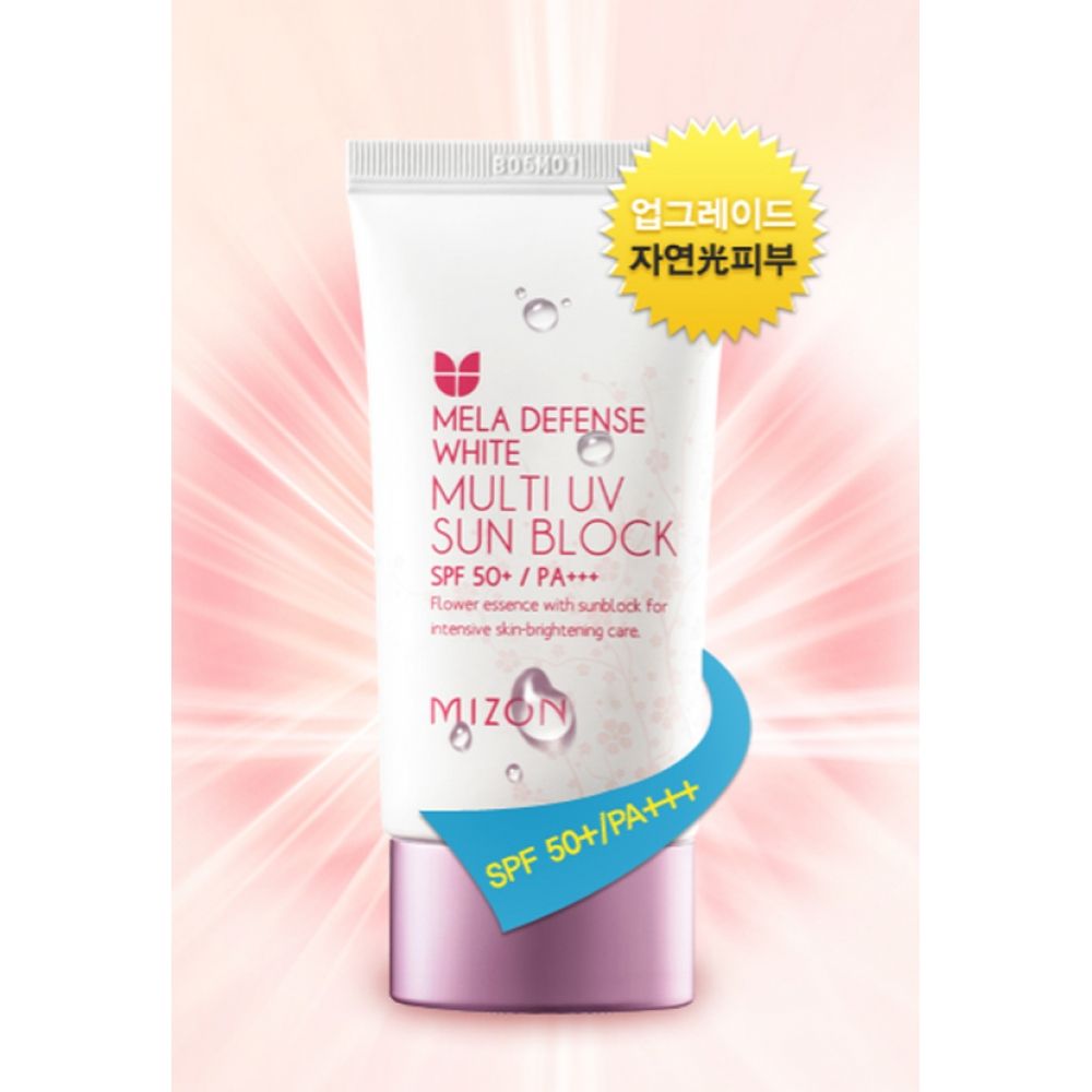 Солнцезащитный крем Mizon Multi UV Sun Block из осветляющей серии Mela Defense White ("Защита от меланина") оказывает тройное функциональное действие. Крем обеспечивает высокую степень защиты от ультрафиолетовых лучей A и B типа (SPF50+/PA+++) и, благодаря входящим в состав аденозину и ниацинамиду, осветляет тусклый тон кожи и оказывает антивозрастное действие.