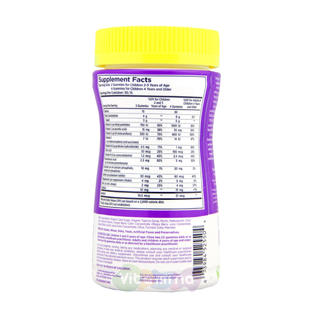 Жевательные мармеладки от компании Солгар. Каждый прием данных витаминов обеспечивает необходимую потребность витаминов и минералов для детей. Данные витамины не содержат ГМО, искусственных добавок и красителей.