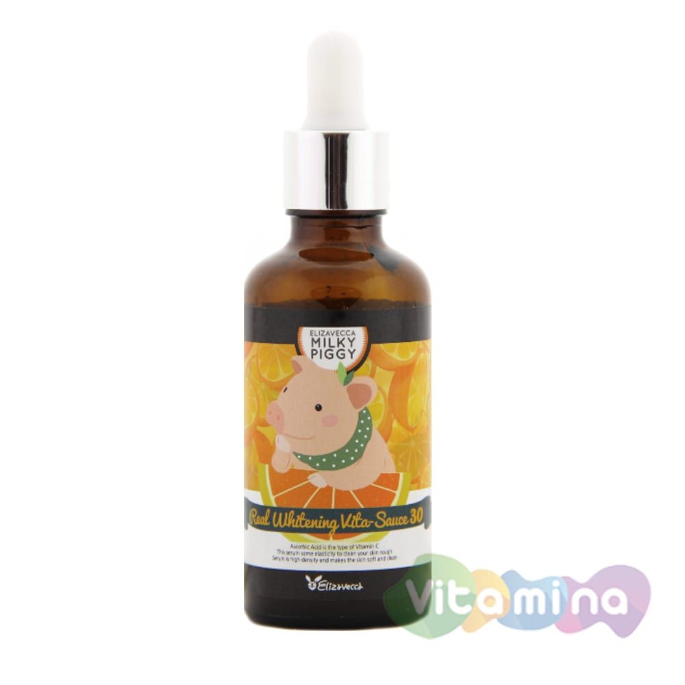 Осветляющая и омолаживающая сыворотка для лица Elizavecca Real White Vita-Sauce 30% содержит 30% витамина С (аскорбиновой кислоты) и комплекс органических компонентов, оказывающих интенсивное омолаживающее действие.